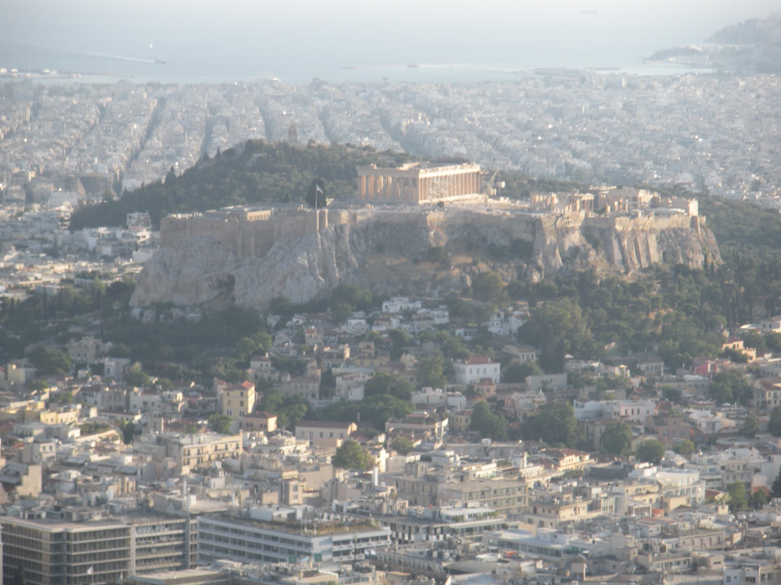 Hello all! So today was the first 'real' day as it was. It wasn't too difficult. I tagged along with the agora dig people for their orientation, and had lunch with them before we wandered home. Then I came and checked into Loring Hall, which is where I will be staying while in Athens. After unpacking we had tea time, which was time to meet everyone. Then we trekked up Lycabetos (or some spelling near that) Hill which is almost right behind the school. It is the highest point in Athens, so the view from the top is fabulous.